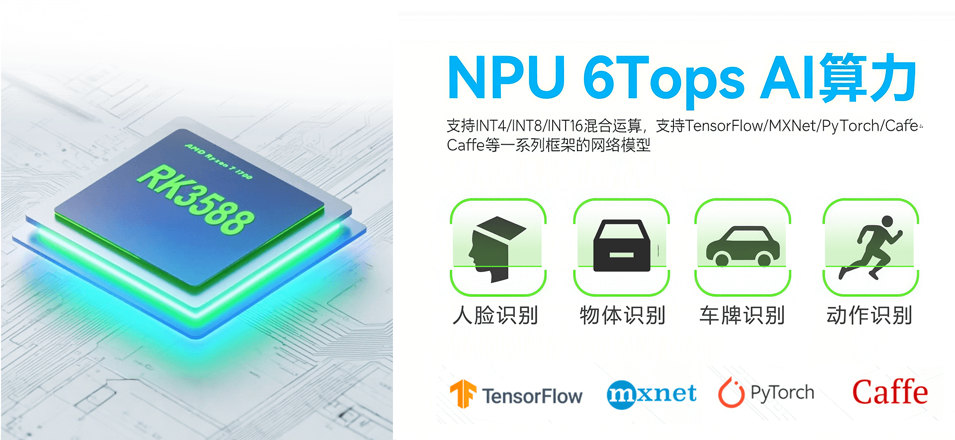 ●MPU:RK3588 四核Cortex-A76@2.4GHz+四核Cortex-A55@1.8GHz