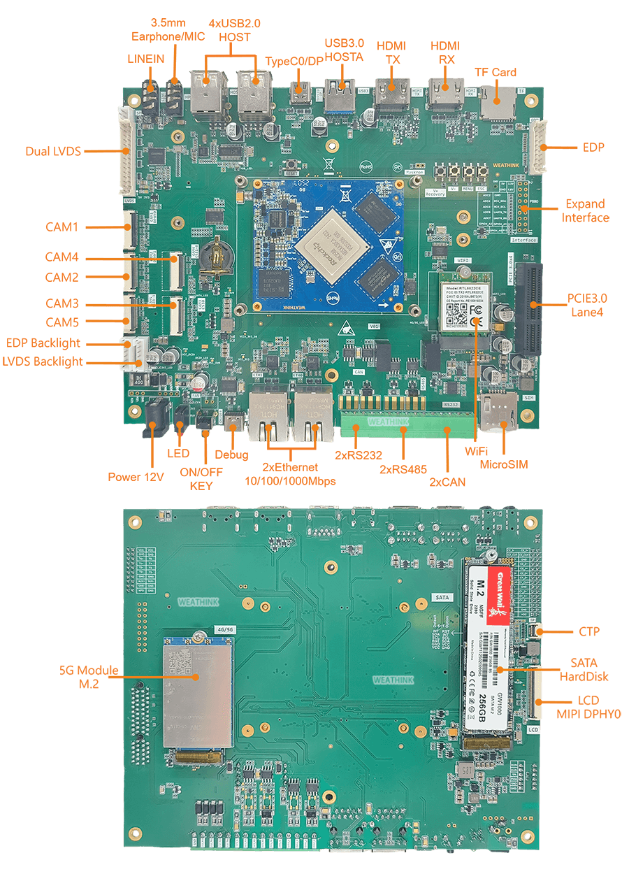擁有PCIE3.0、SATA3.0、I2S、I2C、CAN、UART、SPDIF、SDIO3.0、MIPI-CSI、MIPI-DSI、USB3.0、USB2.0、SPI、GPIO等擴展接口