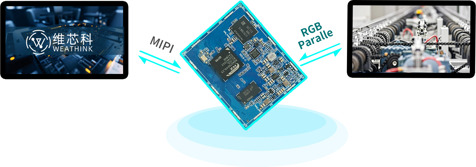 最多支持2路顯示接口同時顯示,24Bit RGB并行接口和MIPI 4Lane接口