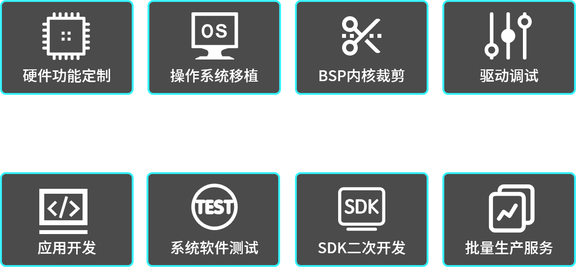 維芯科擁多年ARM產(chǎn)品的技術研發(fā)沉淀和合作伙伴資源,不僅能為客戶提供硬件功能定制設計,還能提供跨SOC平臺的操作系統(tǒng)移植、BSP內(nèi)核裁剪及驅動調試、基于場景的應用軟件開發(fā)、整體的系統(tǒng)軟件測試服務、完善的SDK二次開發(fā)接口等一站式定制服務,幫助客戶極大縮短從產(chǎn)品選型、研發(fā)立項、小量試產(chǎn)到量產(chǎn)交貨的周期,快速搶占市場先機。